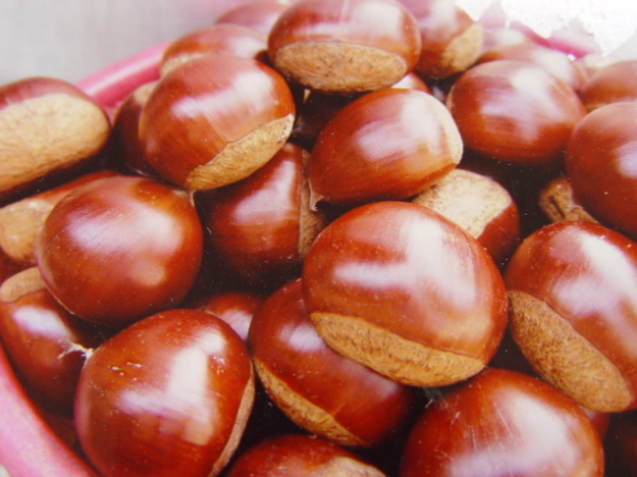 지금 2.5cm~4cm 짙은 갈색인 밤은 율자라고도 불립니다. 한국에서 재배하는 품종은 재래동 가운데 우량종과 일본밤을 개량한 품종으로, 8월 하순부터 10월 중순까지 수확하고 있습니다.