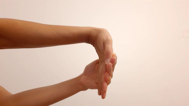 - 손을 앞으로 나란히 한 상태에서 손목을 얼굴로 향하게 뒤로 젖히고 손가락에 힘을 풀어준다.