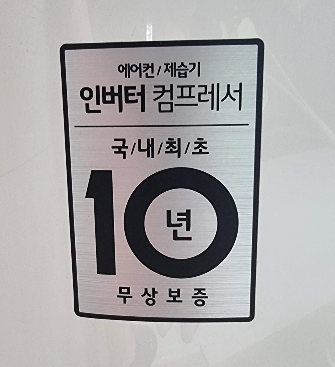 에너지 소비효율등급이 5등급이거나 또는 위 사진처럼 인버터 컴프레서 스티커로도 확인할 수도 있습니다. 최근에 생산하는 벽걸이 에어컨도 정속형에어컨이 있으니 모델명과 냉매 방식으로 확인하시는 것이 중요합니다.